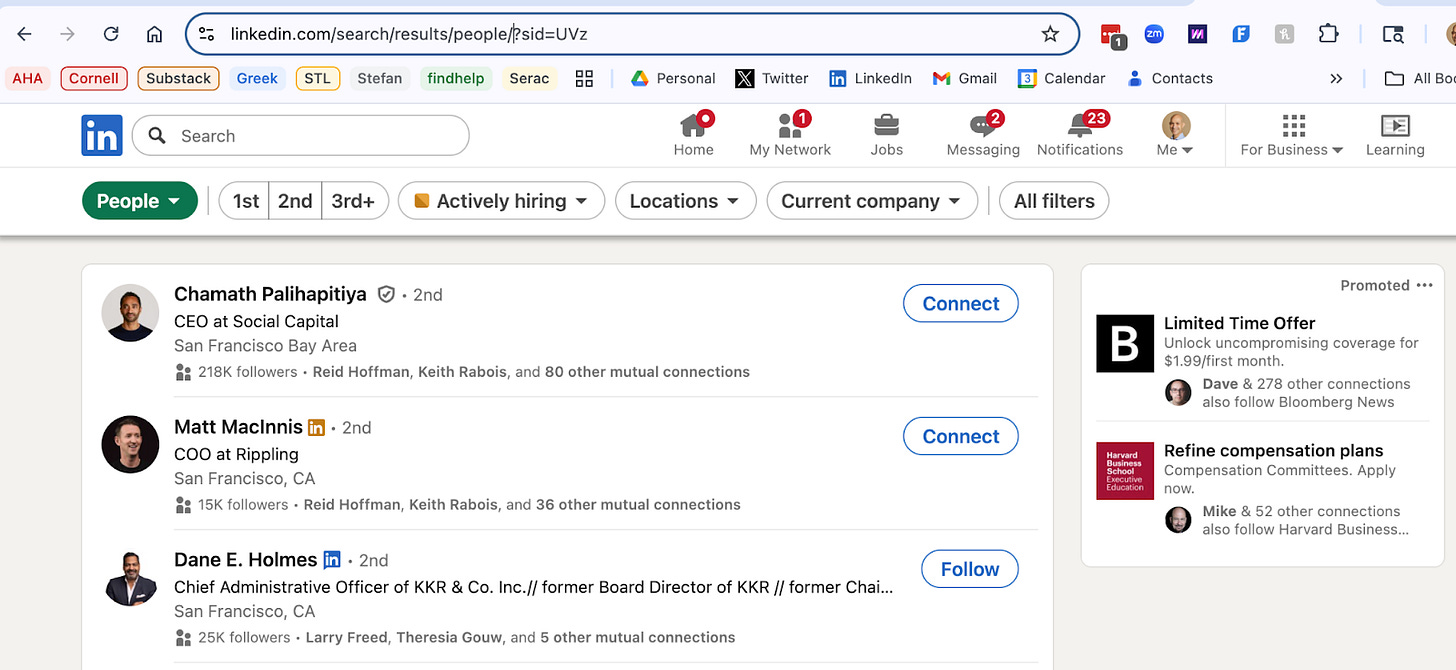 Note that the following section talks about features on LinkedIn that are valid as of this writing in November 2025. Some of the search functions I capture below may require you to have a Premium LinkedIn account.