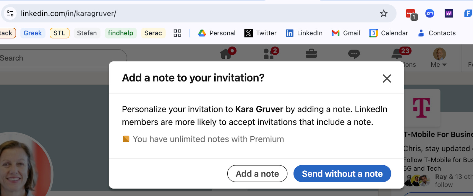 If you decide to connect with someone you don’t know on LinkedIn, I strongly suggest you “add a note” to your contact request. I’ll cover what to put in that note below.